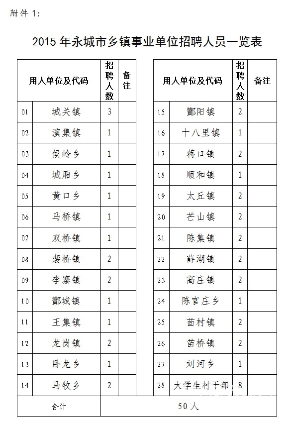 2015年永城市鄉(xiāng)鎮(zhèn)事業(yè)單位公開招聘工作人員實施方案