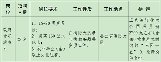 因工作需要,新田縣公安消防大隊面向社會公開招錄22名政府專職消防員,現將有關事項公告如下: