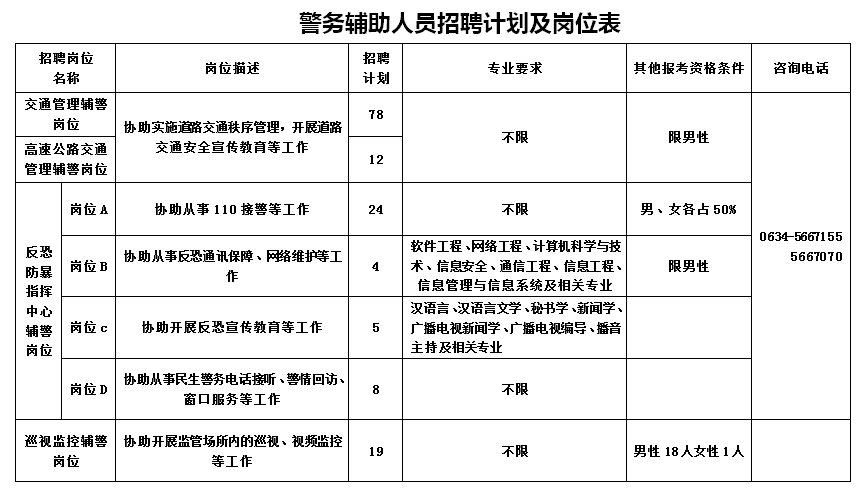(六)身體健康,體形端正,外觀無明顯疾病特征,無影響面容且難以治愈的皮膚病,無色覺異常,無文身,無肢體功能障礙,無精神病史,男性身高不低于1.70米(其中,報考交通管理警務輔助崗位的人員不低于1.72米)、女性身高不低于1.60米,雙眼裸眼視力均在4.8以上或矯正視力均在5.0以上。