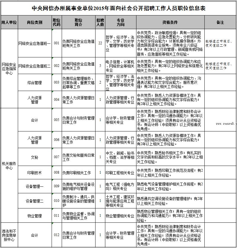 附件:《中央網信辦所屬事業單位2015年面向社會公開招聘工作人員職位信息表》