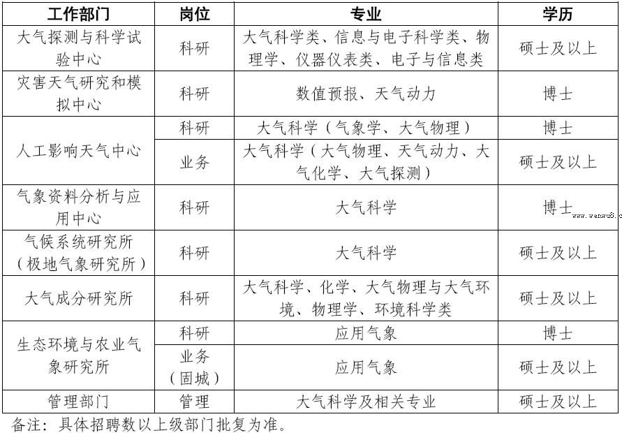 在中國氣象局、中國氣象科學研究院、中國氣象局人才交流中心及相關招聘網站發布招聘公告。