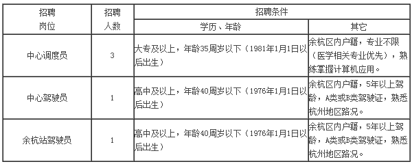 因工作需要,杭州市急救中心余杭分中心決定公開招聘編外工作人員5名,現將有關招聘事項公告如下: