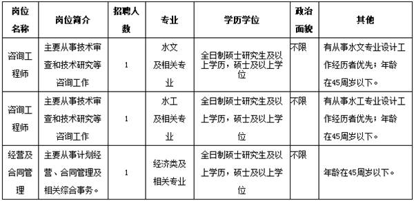 淮河水利委員會水利水電工程技術研究中心(網址http://sub.hrc.gov.cn/hwjyzx/)是水利部淮河水利委員會直屬事業單位,正處級建制,國家發改委認定的甲級工程咨詢機構,主要從事治淮基建工程項目設計審查、評估及專題專項技術研究等工程咨詢工作。根據工作需要,淮河水利委員會水利水電工程技術研究中心2016年面向社會公開招聘3名工作人員。按照《淮委2016年事業單位公開招聘工作實施方案》要求,現將有關事項公告如下: