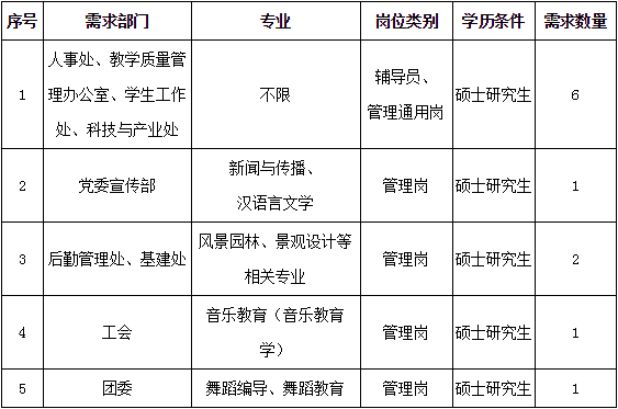 面試辦法:分崗位進行面試,具體辦法在學校人事處網站最新信息欄公布。