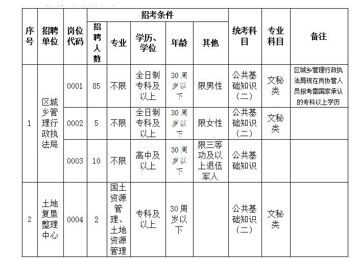 經(jīng)區(qū)政府批準,2016年度潁泉區(qū)城鄉(xiāng)管理行政執(zhí)法局面向社會公開招聘編外工作人員100名;潁泉區(qū)土地復(fù)墾整理中心面向社會公開招聘編外工作人員2名。