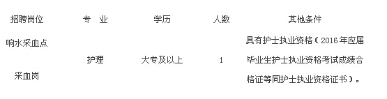 為滿足響水采血點業務發展需要,經研究決定,面向社會公開招聘編外合同制護理人員,F將有關事項公告如下: