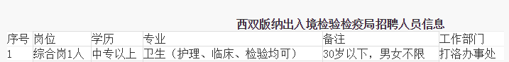 根據工作需要,西雙版納出入境檢驗檢疫局需招聘合同制人員,現將有關事宜公示如下: