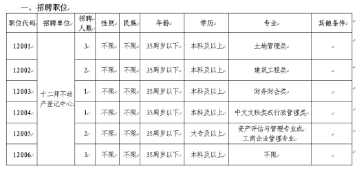 根據《事業單位人事管理條例》、《兵團事業單位面向社會公開招聘工作人員暫行辦法》及十二師相關規定,經研究,對十二師不動產登記中心面向社會公開招聘工作人員12名,F將招聘事項公告如下: