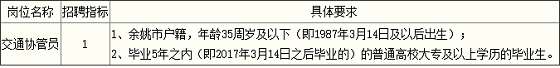 (三)報名方式:報名者持本人身份證、畢業(yè)證書、戶口簿或戶籍證明(集體戶口人員持集體戶口簿首頁復(fù)印件和本人信息頁原件)等原件及復(fù)印件,近期免冠1寸照片2張,并填寫一式兩份《四明山鎮(zhèn)公開招聘交通協(xié)管員報名登記表》(附后,請自行下載),由本人現(xiàn)場報名并接受資格審查。
