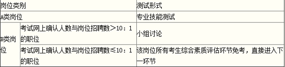 綜合素質評估主要采取專業(yè)技能測試、小組集體討論等形式,對考生進行考察。各崗位具體考核形式見下表。