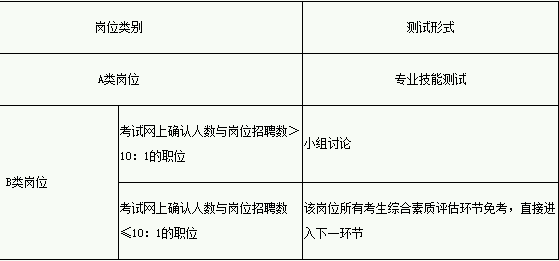 綜合素質(zhì)評估主要采取專業(yè)技能測試、小組集體討論等形式,對考生進(jìn)行考察。各崗位具體考核形式見下表。