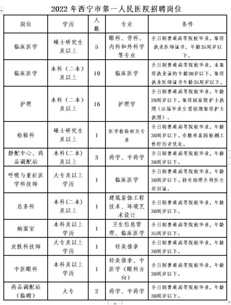 報名地點:西寧市第一人民醫院人力資源部(行政辦公樓三樓)