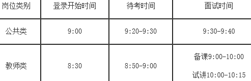 公共類崗位采取結構化面試方式,面試時間10分鐘;教師類崗位采取試講方式,備課時間60分鐘,試講時間15分鐘。