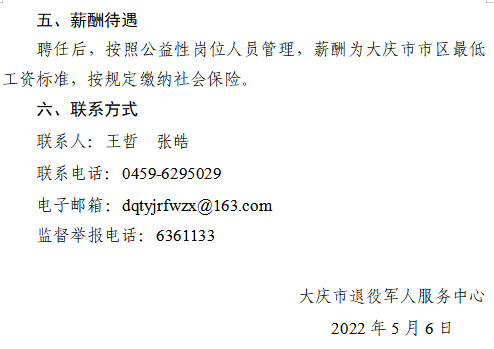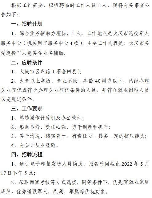 2022黑龍江大慶市退役軍人服務中心招聘公告【1人】