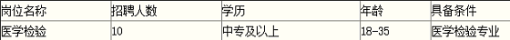 面向社會招聘符合條件要求的醫學檢驗專業人員。