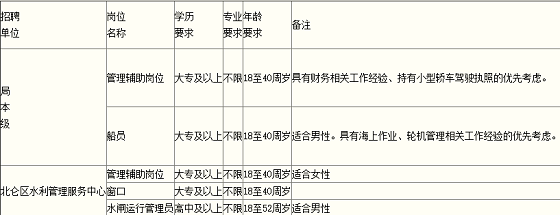 北侖區農業農村局本級2名,下屬北侖區水利管理服務中心3名,詳見表格。