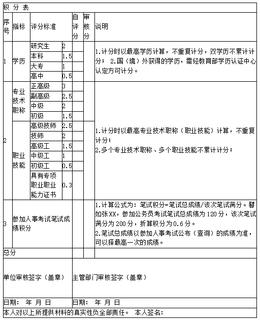 進入編外人才“儲備池”的人員,實行積分制管理。采取學歷、專業技術職稱(職業技能)、參加人事考試筆試總成績等項目,按一定的分值進行積分制管理。