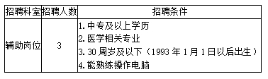 因工作需要,成都市郫都區人民醫院面向社會招聘輔助崗位工作人員3名,具體要求如下: