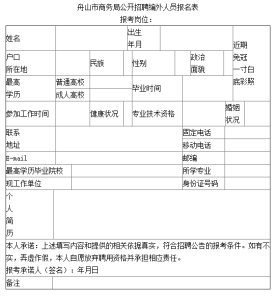 (1)《舟山市商務局公開招聘編外人員報名表》(附件2);