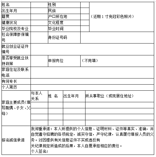 昌寧縣政務(wù)服務(wù)管理局公益性人員招聘報(bào)名表