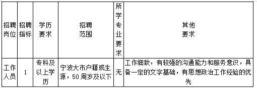因工作需要,鄞州區思想政治工作(精神文明建設)研究會擬面向社會招聘工作人員1名。具體要求如下: