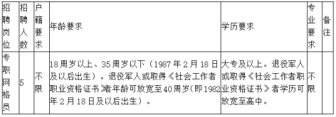 (四)大專及以上學歷,專業不限;退役軍人或有社會工作者職業資格證書的,學歷可放寬至高中;