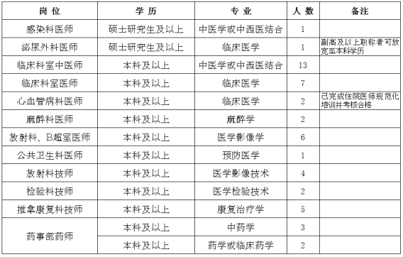 5.本科及以上學歷、在二級及以上醫院從事相關醫療衛生專業技術工作兩年以上、取得相應的中級技術資格職稱(醫療專業須取得執業醫師資格)、年齡不超過40周歲;