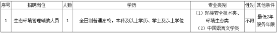 龍巖市連城生態環境局根據工作需要,擬公開招聘勞務派遣工作人員1名,具體事項如下: