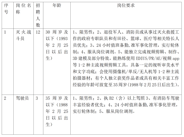 (五)具有車輛駕駛(汽車B2照及以上)、滅火救援相關(guān)工作經(jīng)歷的,年齡放寬至35周歲(1988年2月25日后出生)。