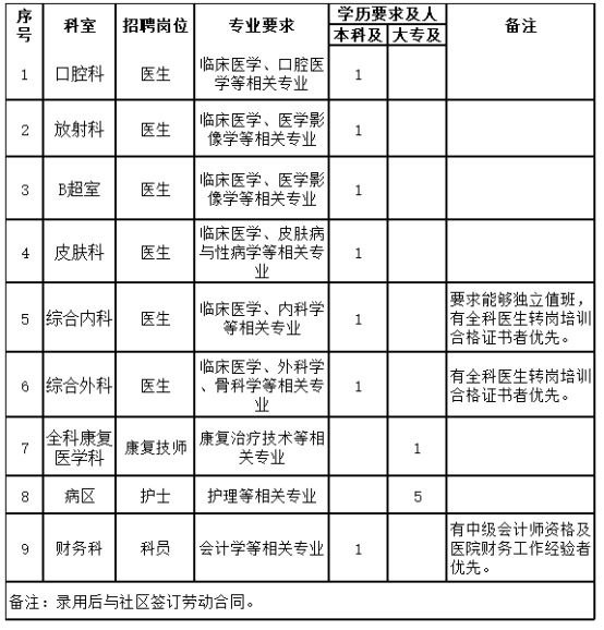 根據醫院工作需要,我院南門社區衛生服務中心擬向社會公開招聘人員13名,現就有關事項公告如下: