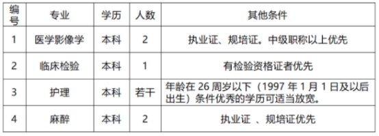 5、第一學(xué)歷為統(tǒng)招的全日制本科畢業(yè)生,已取得相應(yīng)學(xué)歷、學(xué)位,具備崗位要求的相關(guān)資格證、執(zhí)業(yè)證,護理專業(yè)條件優(yōu)秀的學(xué)歷可適當(dāng)放寬。