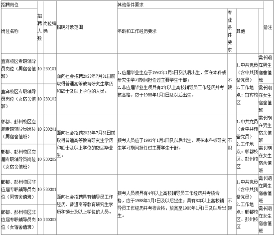 西華大學2023年4月公開考試招聘事業編制輔導員崗位和條件要求一覽表