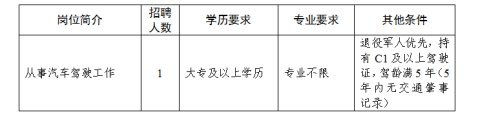招聘崗位為管理輔助人員(駕駛員)1人。