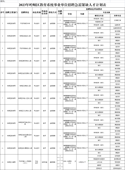 根據《平涼市事業單位公開招聘人員實施辦法(暫行)》(平辦發〔2011〕59號)規定,崆峒區教育衛健系統繼續面向社會招聘急需緊缺人才,現將有關事項公告如下: