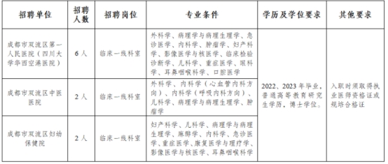 成都市雙流區(qū)“蓉漂人才薈”走進北京大學(xué)考核招聘10名衛(wèi)生專業(yè)技術(shù)人員崗位表