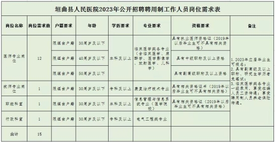 詳見《垣曲縣人民醫院2023年公開招聘聘用制工作人員崗位需求表》(附件1)。