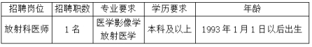 根據醫院工作需要,現面向社會公開招聘衛生專業技術人員1名。招聘公告如下: