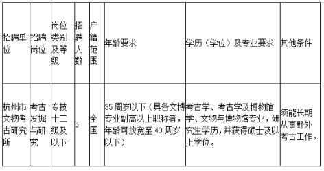 杭州市文物考古研究所為杭州市園林文物局下屬由市財政全額補助的公益一類事業單位,主要承擔全市地下文物的調查、勘探、發掘和出土文物的科技保護與修復、學術研究等工作。因單位業務發展需要,現公開招聘高層次人才5名。根據《事業單位人事管理條例》(國務院令第652號)、《事業單位公開招聘人員暫行規定》(人事部令第6號)和《杭州市事業單位公開招聘工作人員操作程序(試行)》(杭人社發〔2014〕380號)等文件規定,現將有關招聘事項公告如下: