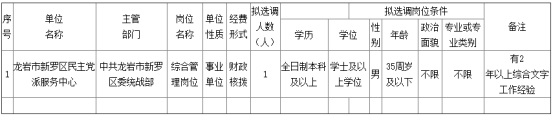 筆試和面試時間及地點:由中共龍巖市新羅區(qū)委統(tǒng)戰(zhàn)部另行通知。
