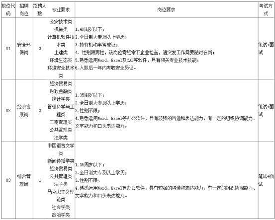 此次招聘人數6名,其中安全環保崗3人,經濟發展崗2人,綜合管理崗1人。