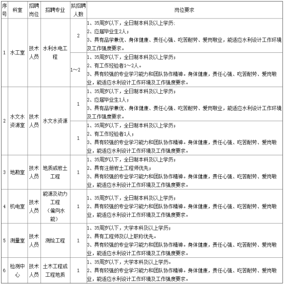 因業務發展需要,吉安市水利水電規劃設計院面向社會公開招聘優秀專業技術人才,具體崗位和要求如下: