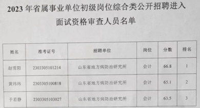 2023年省屬事業單位初級崗位綜合類公開招聘進入面試資格審查人員名單