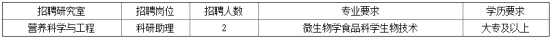 福建省農業科學農業工程技術研究所營養科學與工程研究室因工作需要,擬向社會公開招聘編外科研輔助人員2名,具體方案如下: