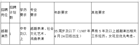 根據《浙江省事業單位公開招聘人員暫行辦法》要求,經舟山市人力資源和社會保障局同意,舟山市藝術劇院決定面向社會公開招聘1名越劇演員。現將有關事項公告如下:
