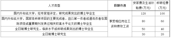 按照我院高層次人才引進(jìn)工作方案,符合條件的博士畢業(yè)生可享受以下相應(yīng)待遇(金額為人民幣,下同):