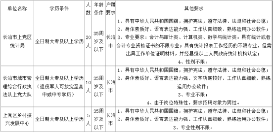 長治市上黨區人力資源和社會保障局因工作需要,委托山西萬保人力資源有限公司公開招聘35名工作人員,現將有關事項公告如下: