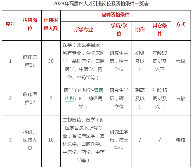 (三)具體招聘崗位及要求,詳見《成都市第五人民醫院2023年高層次人才引進崗位及資格條件一覽表》。
