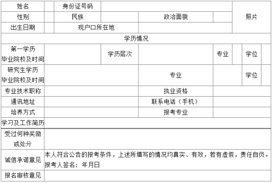 淮南市市屬公立醫院公開招聘碩士研究生報名表