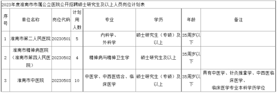 具體招聘崗位和條件見《2023年度淮南市市屬公立醫院公開招聘碩士研究生及以上人員崗位計劃表》(附件1)