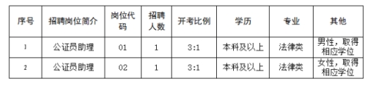 因工作需要,市司法局所屬儀征市公證處現(xiàn)向社會(huì)公開招聘2名編外工作人員,特制定公告如下: